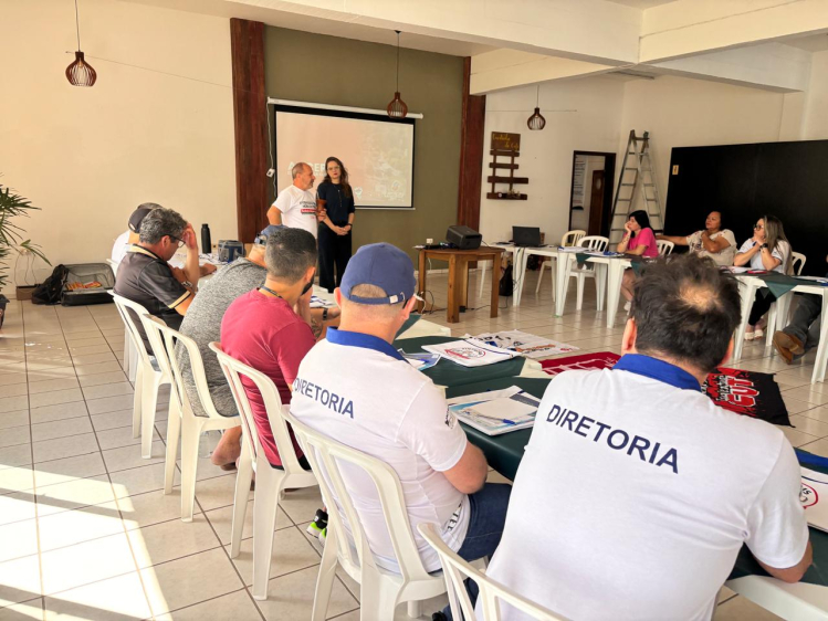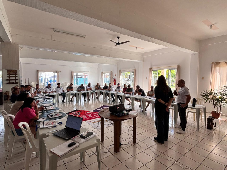 A atividade foi conduzida pela equipe da Escola Sul, com a presença do coordenador Celso Woyciechowski e da educadora Tayliny Silva. A metodologia participativa permitiu uma troca intensa de experiências entre os trabalhadores e os formadores.